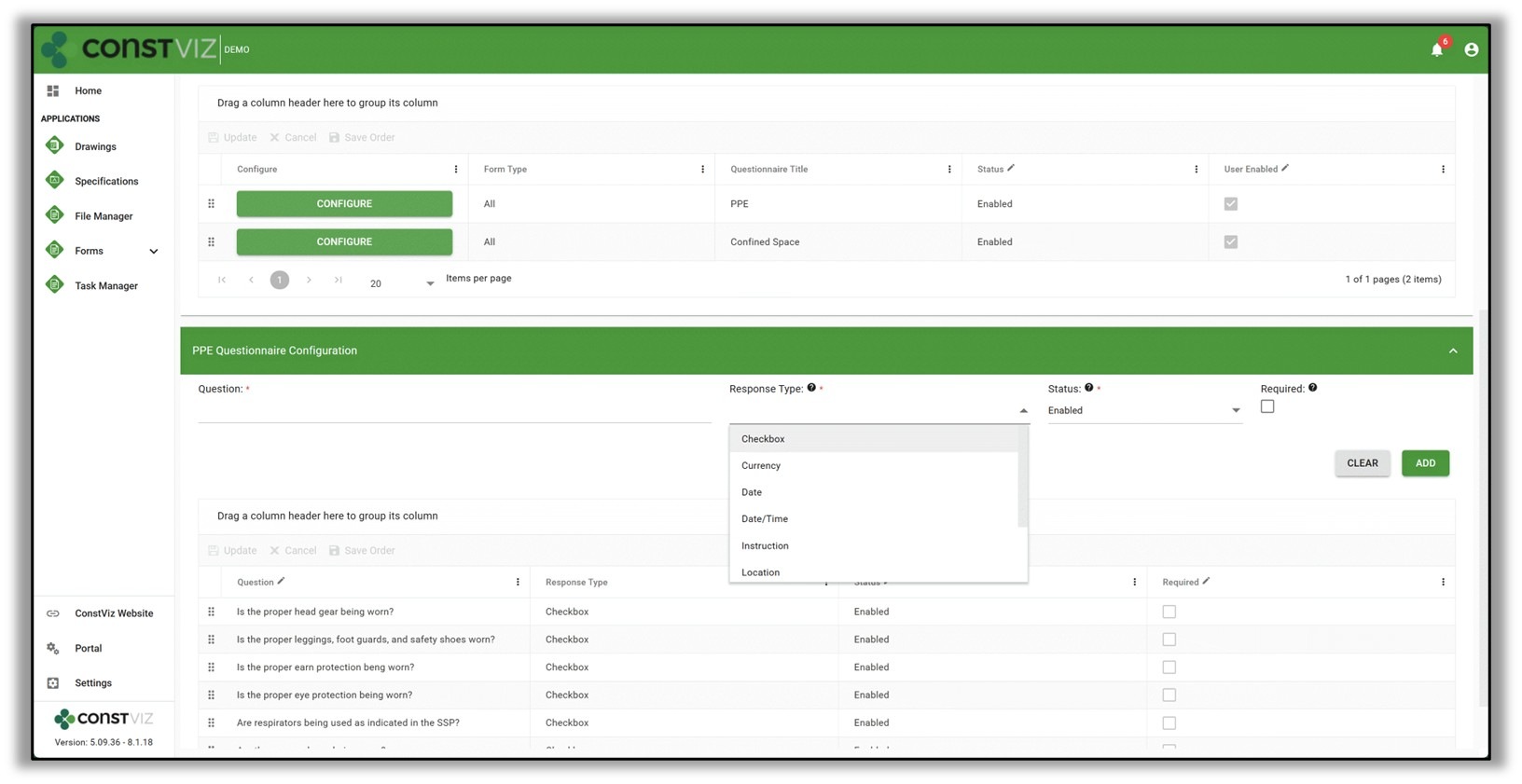 Our team recently released a new questionnaire component that Construction Viz users can add to any form app to collect unique response types for each question, including text, checkboxes, dates, numbers, and locations. Phase 2 of our enhancement roadmap allowed users to include ad hoc comments to each response.