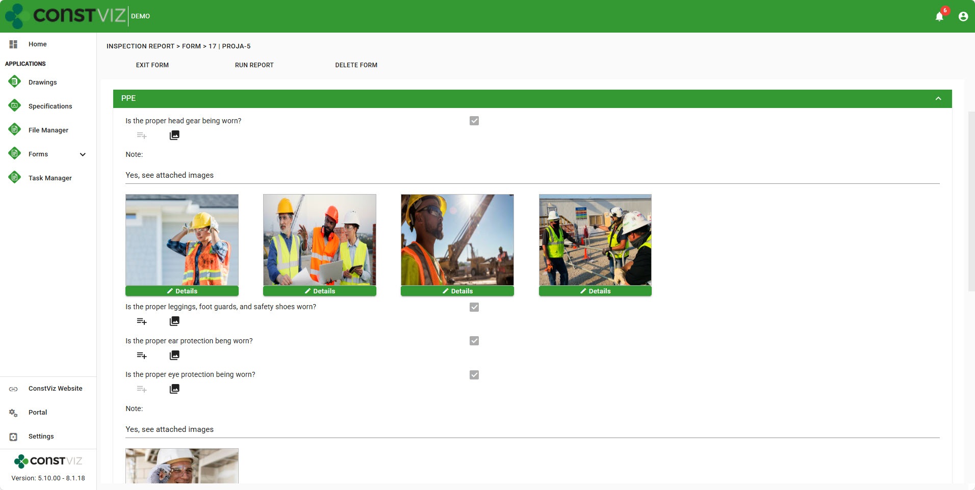 Some of these components capture large amounts of data, such as each piece of equipment at a jobsite, personnel and visitors on site, observations made, bid quantities completed, and stakeholder reviews.
